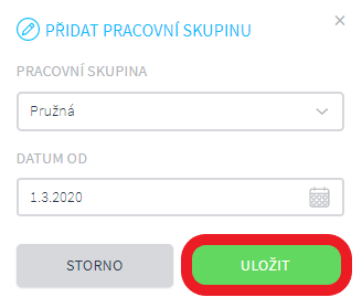 a následne zvolíte novú pracovnú skupinu a dátum od ktorého má byť zamestnanec v tejto pracovnej skupine zaradený a voľbu potvrdíte tlačidlom Uložiť.