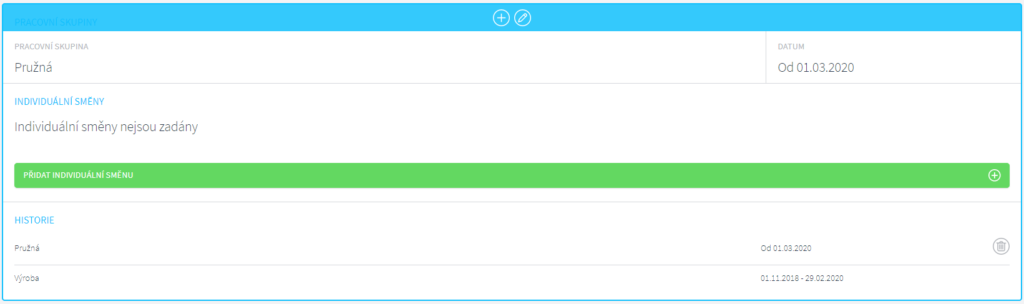 Po tomto kroku sa u zamestnanca zmení pracovná skupina av detaile zamestnanca v časti Pracovné skupiny vidíte novú pracovnú skupinu a tiež históriu, v akých pracovných skupinách zamestnanec pracoval.