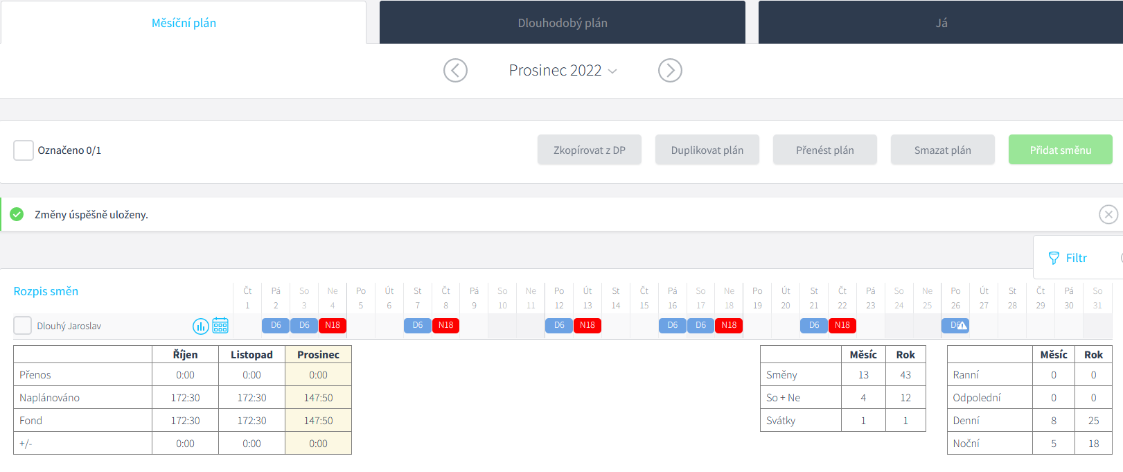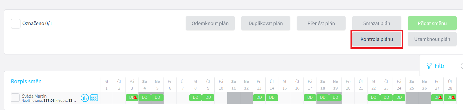 Po naplánovaní smien v dlhodobom aj mesačnom pláne si môžete nechať celý plán skontrolovať pomocou funkcie Kontrola plánu.