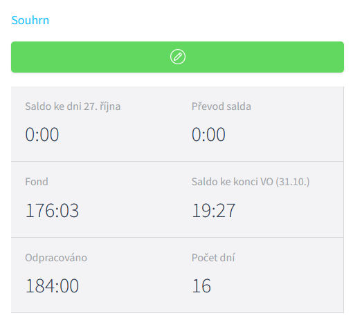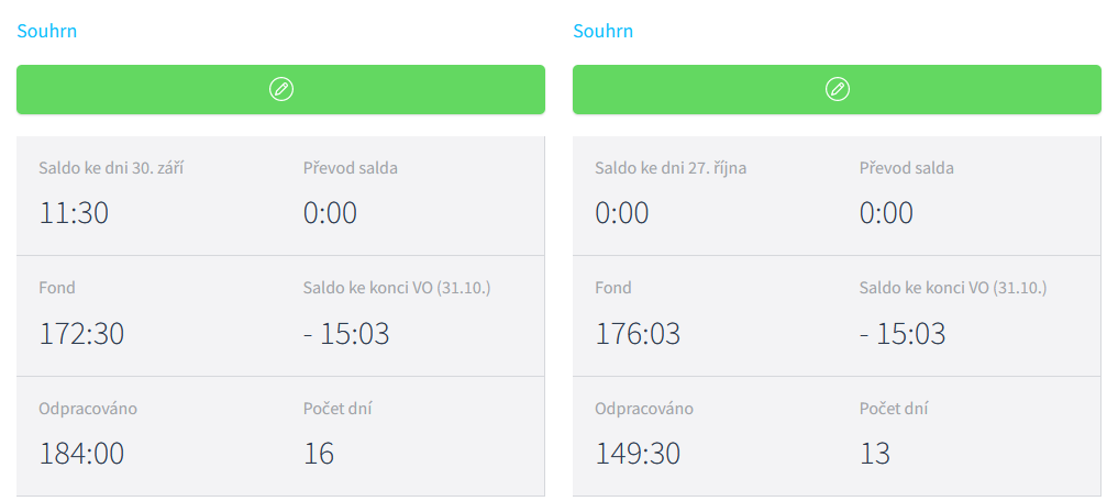 Akonáhle zamestnanec z vyššie uvedeného príkladu naplní všetky zmeny v októbri, bude jeho súhrn v októbri nasledujúci.