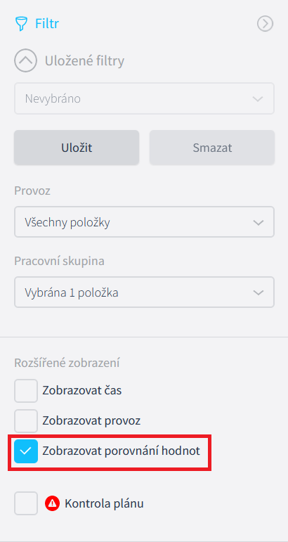 Porovnanie hodnôt si môžete spustiť opäť cez Filter zaškrtnutím voľby Zobrazovať porovnanie hodnôt.