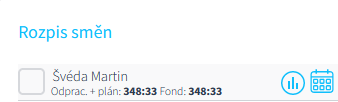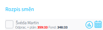 Všetky hodiny tiež prehľadne vidíte vo výkaze zamestnanca, kde je vidieť ako dlhodobý plán, mesačný plán aj skutočne reálne odpracovaná smena.
