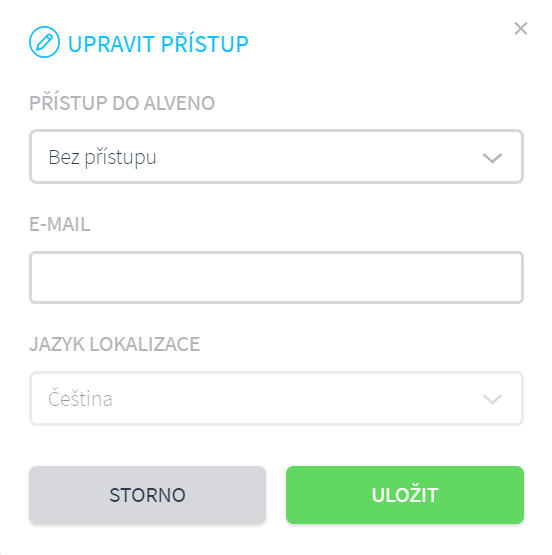 Prejdite myšou nad sekciu Prístup do Alveno a kliknite na symbol ceruzky čím otvoríte editáciu prístupov.