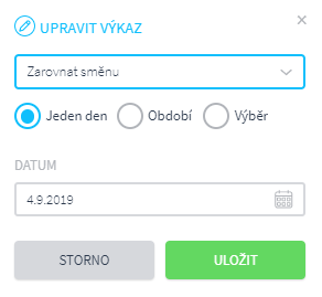 Následne sa Vám aktivuje možnosť Upraviť výkaz av rolovacom menu vyhľadáte možnosť Zarovnať smenu.