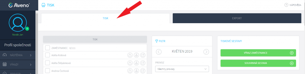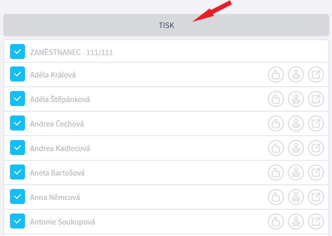 Po výbere zamestnancov sa Vám aktivuje tlačidlo TLAČ.