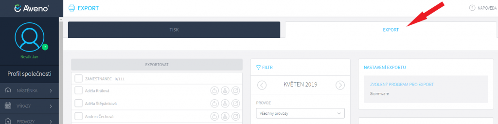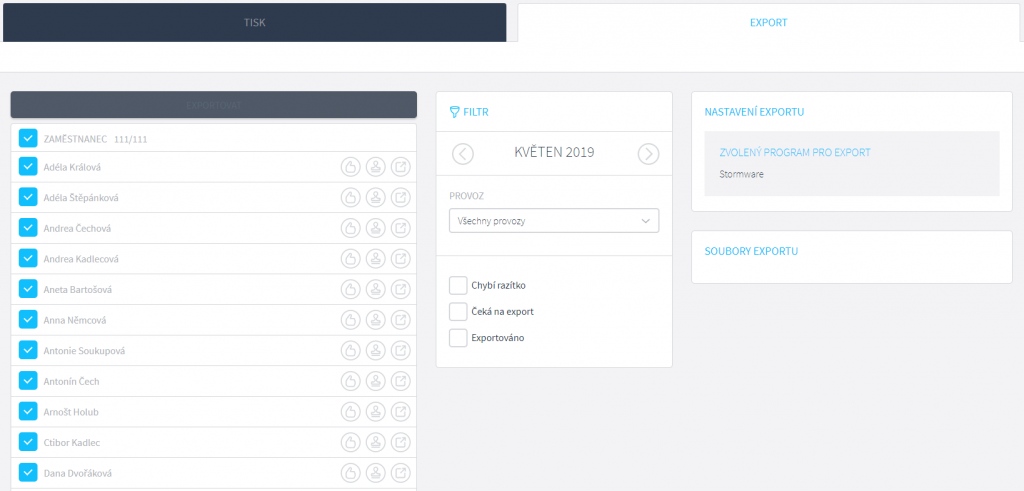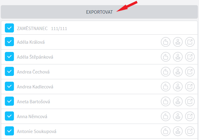 Po výbere zamestnancov sa Vám aktivuje tlačidlo EXPORTOVAŤ.