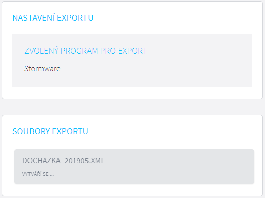 Keďže vytváranie exportného súboru pre väčšie množstvo zamestnancov môže chvíľku trvať, tak uvidíte na pravej strane v položke Súbory exportu informáciu o tom, že sa Váš exportný súbor vytvára.
