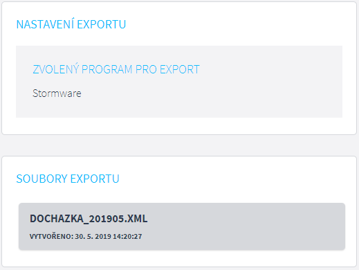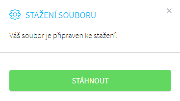 Akonáhle je exportný súbor vytvorený, tak tu bude opäť informácia, že exportný súbor je vytvorený, tlačidlo je aktívne.